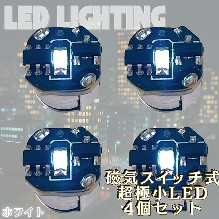 「商品仕様」 ・内容:4個セット ・LEDタイプ:超極小LEDモジュール ・スイッチ:磁気スイッチ ・点灯モード:3種類 (点灯 / 点滅 / ゆっくり点滅) ・対応電池:LR621ボタン電池(別売り) *電池・磁石は付属していません。