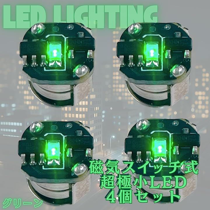 「商品仕様」 ・内容:4個セット ・LEDタイプ:超極小LEDモジュール ・スイッチ:磁気スイッチ ・点灯モード:3種類 (点灯 / 点滅 / ゆっくり点滅) ・対応電池:LR621ボタン電池(別売り) *電池・磁石は付属していません。