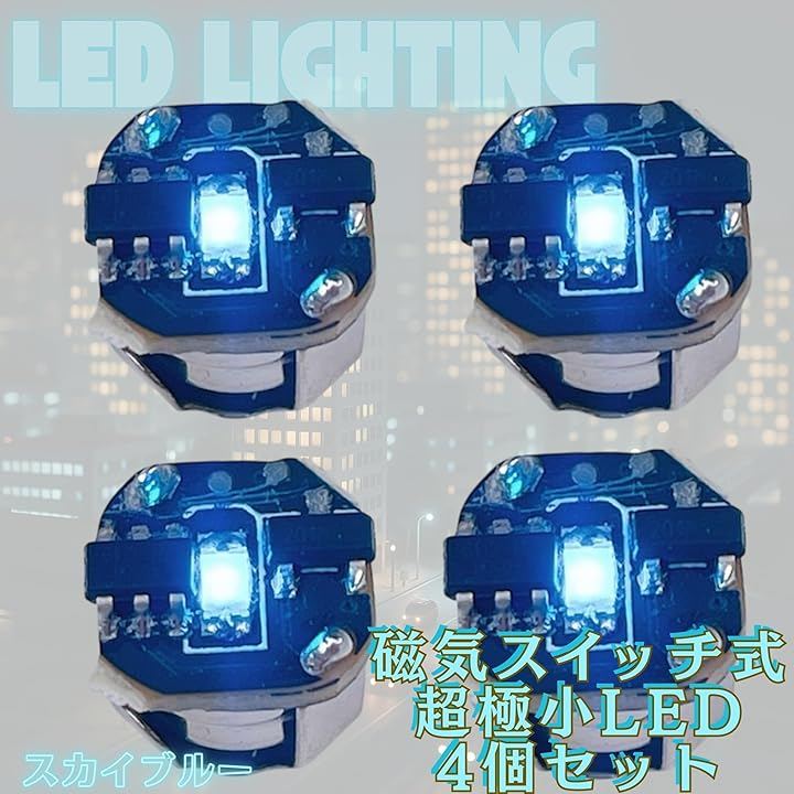 「商品仕様」 ・内容:4個セット ・LEDタイプ:超極小LEDモジュール ・スイッチ:磁気スイッチ ・点灯モード:3種類 (点灯 / 点滅 / ゆっくり点滅) ・対応電池:LR621ボタン電池(別売り) *電池・磁石は付属していません。