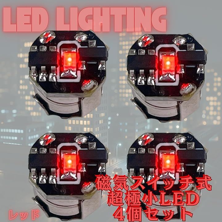 「商品仕様」 ・内容:4個セット ・LEDタイプ:超極小LEDモジュール ・スイッチ:磁気スイッチ ・点灯モード:3種類 (点灯 / 点滅 / ゆっくり点滅) ・対応電池:LR621ボタン電池(別売り) *電池・磁石は付属していません。
