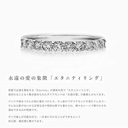 【永遠の愛の象徴「エタニティリング」】英語で永遠を意味する「Eternity」の意味を持つエタニティリング。途切れることなく敷き詰められたダイヤモンドは「永遠の愛」の象徴とされています。バッグや物を掴んだときに傷をつけたり、引っ掛けてダイヤモンドが落ちてしまう・・・そんな心配がないから日常生活や特別な席でも着けられ、様々なシーンで華やかさを演出できるのが特徴です。【こだわりのデザイン】一粒一粒厳選した高品質ダイヤモンドを10石使用しております。職人技で一つひとつ繊細にセッティングされたメレダイヤはまるで一筋の光のように輝き、女性らしさを格上げします。結婚指輪や婚約指輪と重ね付けしたりといった楽しみ方も可能です。【大切な方へのギフトに】専用ジュエリーケースに指輪をセットしギフトラッピング済みの状態でお届けいたしますので、そのままプレゼントとしてお渡し可能です。記念日や誕生日プレゼント、贈り物だけでなく自分へのご褒美にも。※ジュエリーケースはイメージと異なる場合がございますのでご了承下さい。【リングサイズ】10号【サイズ】幅:最大2.0mm、最小1.2mm / 厚み:最大2.1mm、最小1.0mm【宝石種類】天然ダイヤモンド (ラウンドブリリアントカット) 0.3ct【素材】プラチナ製 PT900 (品質を保証するPT900の刻印あり)【保証書】弊社発行の品質保証書を付属しております。【ジュエリー専門店「LEGAN」について】フランス語で「宝石箱」を意味するレガンは、「幸福を特別な物として残してほしい」という想いでつくられた創業34余年のジュエリー専門店です。結婚指輪、婚約指輪から様々なデザインのネックレスなど、高品質な商品を多数ご用意しております。