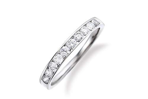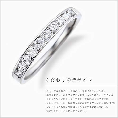 【こだわりのデザイン (レール留) 】一粒一粒厳選した高品質ダイヤモンドを10石使用しております。職人技で一つひとつ繊細にセッティングされたメレダイヤはまるで一筋の光のように輝き、女性らしさを格上げします。結婚指輪や婚約指輪と重ね付けしたりといった楽しみ方も可能です。