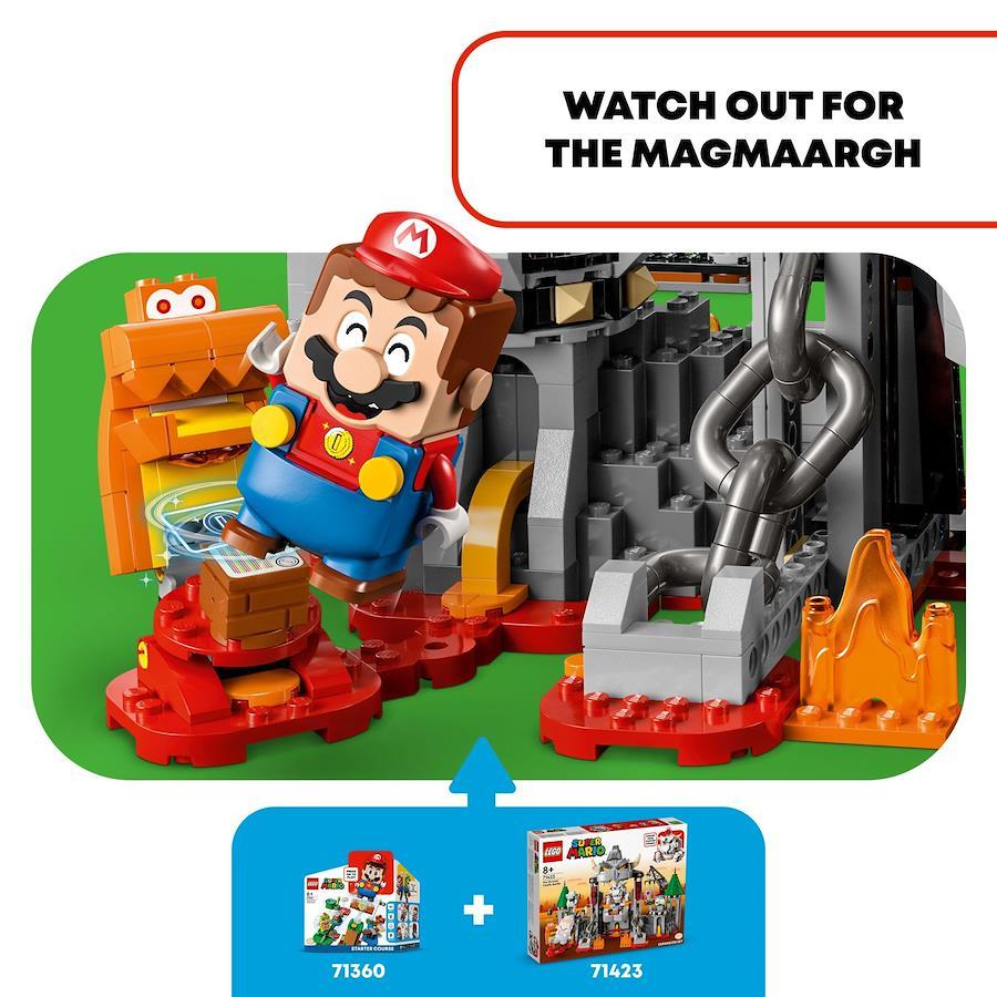 詳細なドライクッパ城バトル拡張セット (71423) - お子様はブロックで構築されたレゴスーパーマリオの世界で象徴的なスーパーマリオの場所を再現し、コイン収集プレイができます。