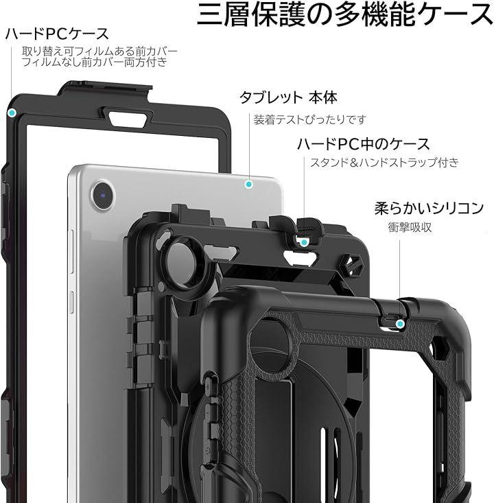 保護フィルム、頑丈なPC製のフロントカバー、柔らかいシリコンの3層構造を備えた丈夫で耐久性のあるLenovo Tab M8 4代&NEC LAVIE T0855/GASの全身ケースです。