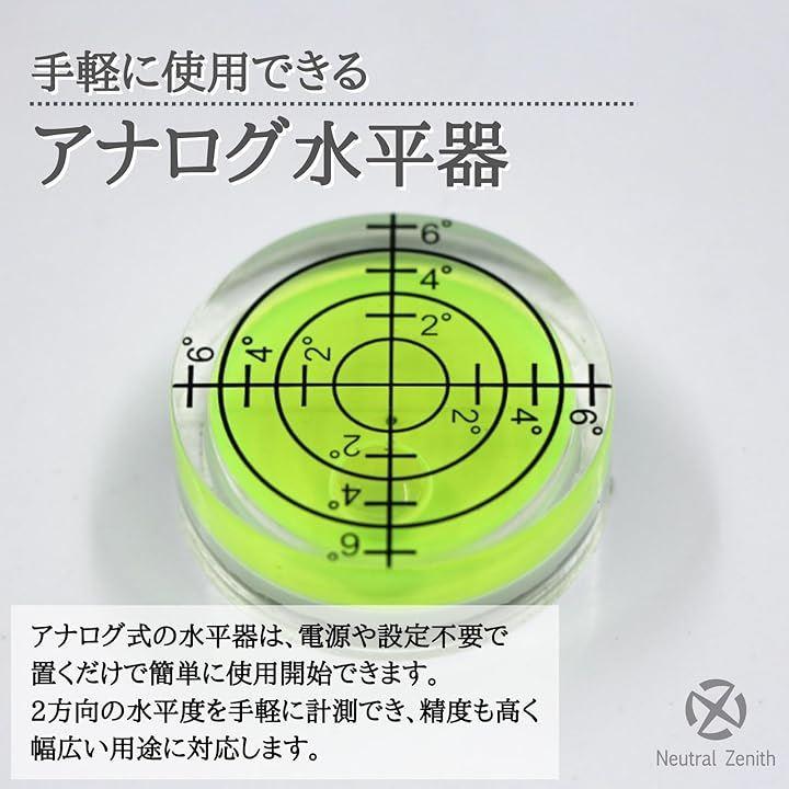 「手軽に使用できるアナログ水平器」アナログ式の水平器は、電源や設定不要で、置くだけで簡単に使用開始できます。