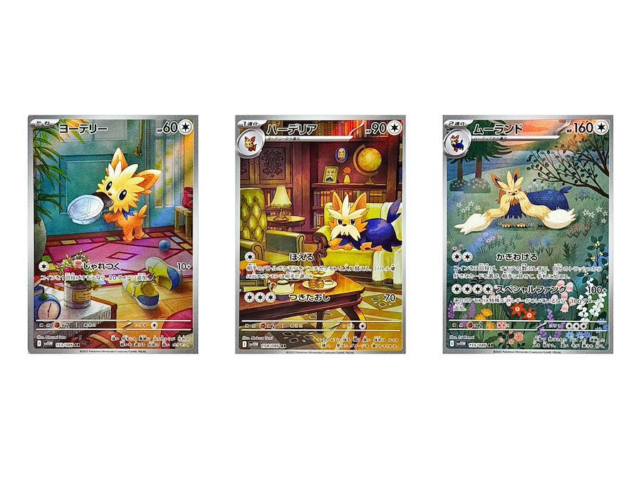 🔥 商品説明こちらは、ポケモンカードゲーム 「ブラックボルト(SV11B)」と「ホワイトフレア(SV11W)」 に収録された、人気ポケモン ヨーテリー・ハーデリア・ムーランドの進化ラインが揃った豪華ARカードセットです。