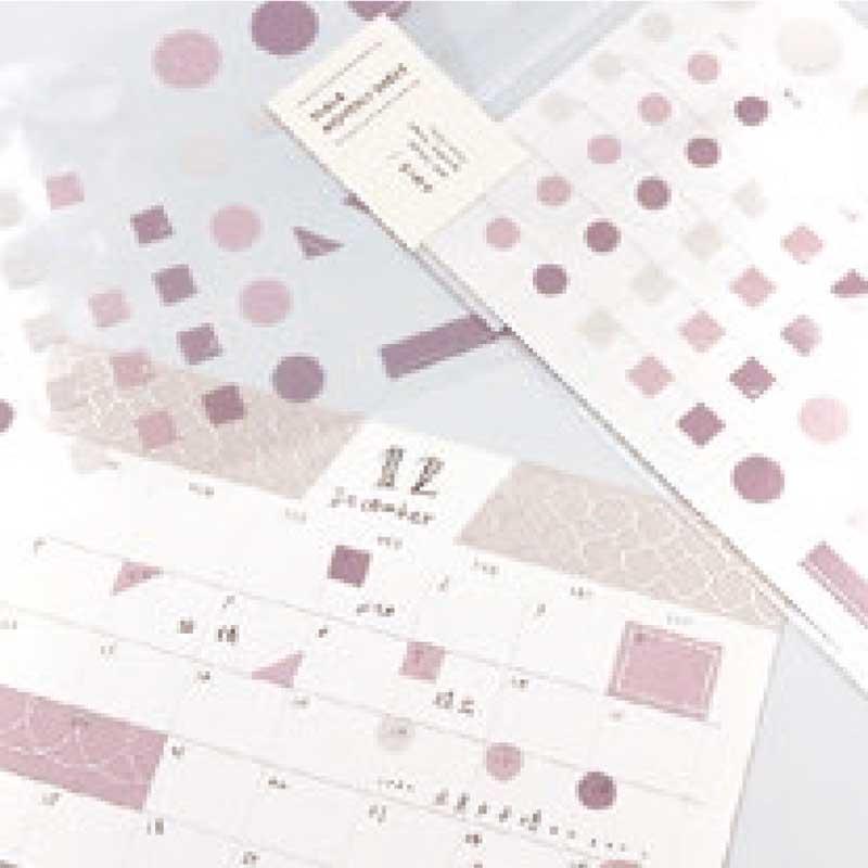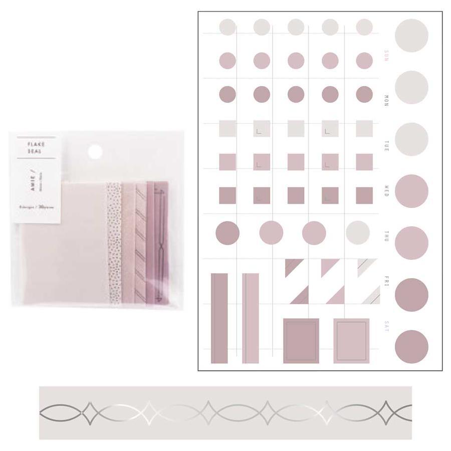 マスキングテープ:5mm幅・長さ5mシール(マンスリーシート):W102×H150mmフレークシール:W50×H70mm・6種各5枚
