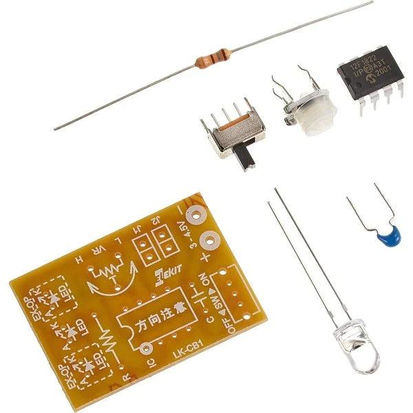 エレキット LED調光・点滅キット LK-CB1 LEDの明るさや点滅間隔を簡単に調節できる、LED点灯基板キットです。★赤色LED(φ5mm)が1個付属しています。★組み込みしやすい小型基板です。★同じ型番のLEDを最大3個まで取り付けられます。調光・点滅A・点滅B・ランダム点滅の4つのモードから好みの1つを選んで組み立てます。①調光:ボリュームで明るさを調節②点滅A:ピカッピカッっと点滅し、ボリュームで点滅間隔を調節③点滅B:ジワージワーと点滅し、ボリュームで点滅間隔を調節④ランダム点滅:キャンドルの炎のゆらぎのように明暗が不規則に変化LK-CB1に簡単接続!小型リレーボードキット(5V用) LK-RB1小型のリレーと駆動回路がセットになったキットです。