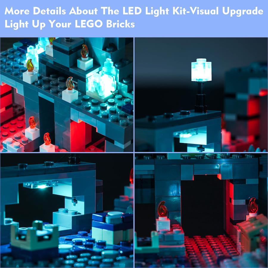 【素晴らしいライトデザイン】特別にデザインされた照明セットは、LEGOマインクラフト「ディープダークバトル21246」に特別な変化をもたらします。ユニークで創造的なライトデザインにより、素晴らしい照明効果が得られます。 ダイナミックなライトで静的なレゴ21246セットに命を吹き込み、チャーミングなディテールで満たされたセットを照らします。