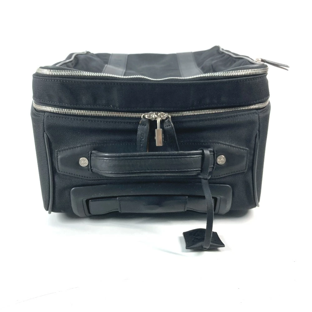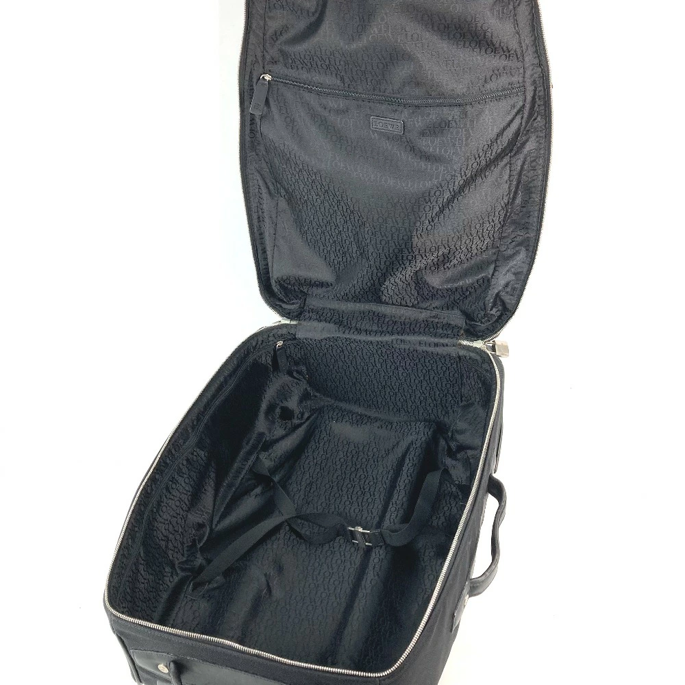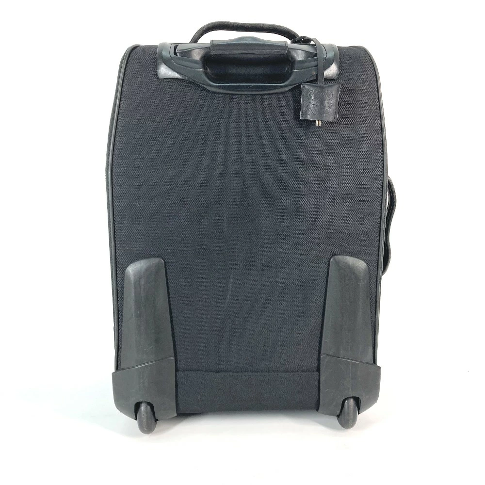 Pre-owned LOEWE Anagram Two-Wheel Suitcase with Logo Travel Bag in Leather/Nylon, Black.