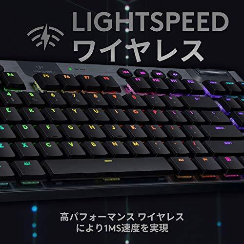【Logicool G G913 テンキーレス ワイヤレスゲーミングキーボード】LIGHTSPEED ワイヤレス、3種のGXスイッチ、LIGHTSYNC RGBなど先端の機能を装備した上級モデルG913はコンパクトサイズのテンキーレス版が登場。【有線より速いLIGHTSPEED】LIGHTSPEED ワイヤレス テクノロジーを搭載、無線遅延の無いワイヤレスゲーミングキーボード。Bluetooth接続にも対応でデバイス2台と同時接続が可能。【GLスイッチ クリッキー】ロープロファイルGLスイッチとは通常スイッチの半分の高さ、アクチュエーション距離は1.5mmで従来品より25%早くなる。メカニカルスイッチ ならではのスピードと精確性を持ちつつ、よりエルゴノミクスに適したタイピング体験と最高の触り心地を実現する。クリッキースイッチは青軸のようなクリック感が強くて打ち心地がよいスイッチ。【LIGHTSYNC RGB】1680万色力カスタマ自由のRGBだけでなく、LIGHTSYNC機能を使えばゲームやエンターテインメント コンテンツとライトを連動させることが可能。【パッケージ内容】製品本体、LIGHTSPEED USBレシーバー、micro-USBケーブル、 USB延長ケーブル 、取扱説明書、2年間無償保証書、保証規定。