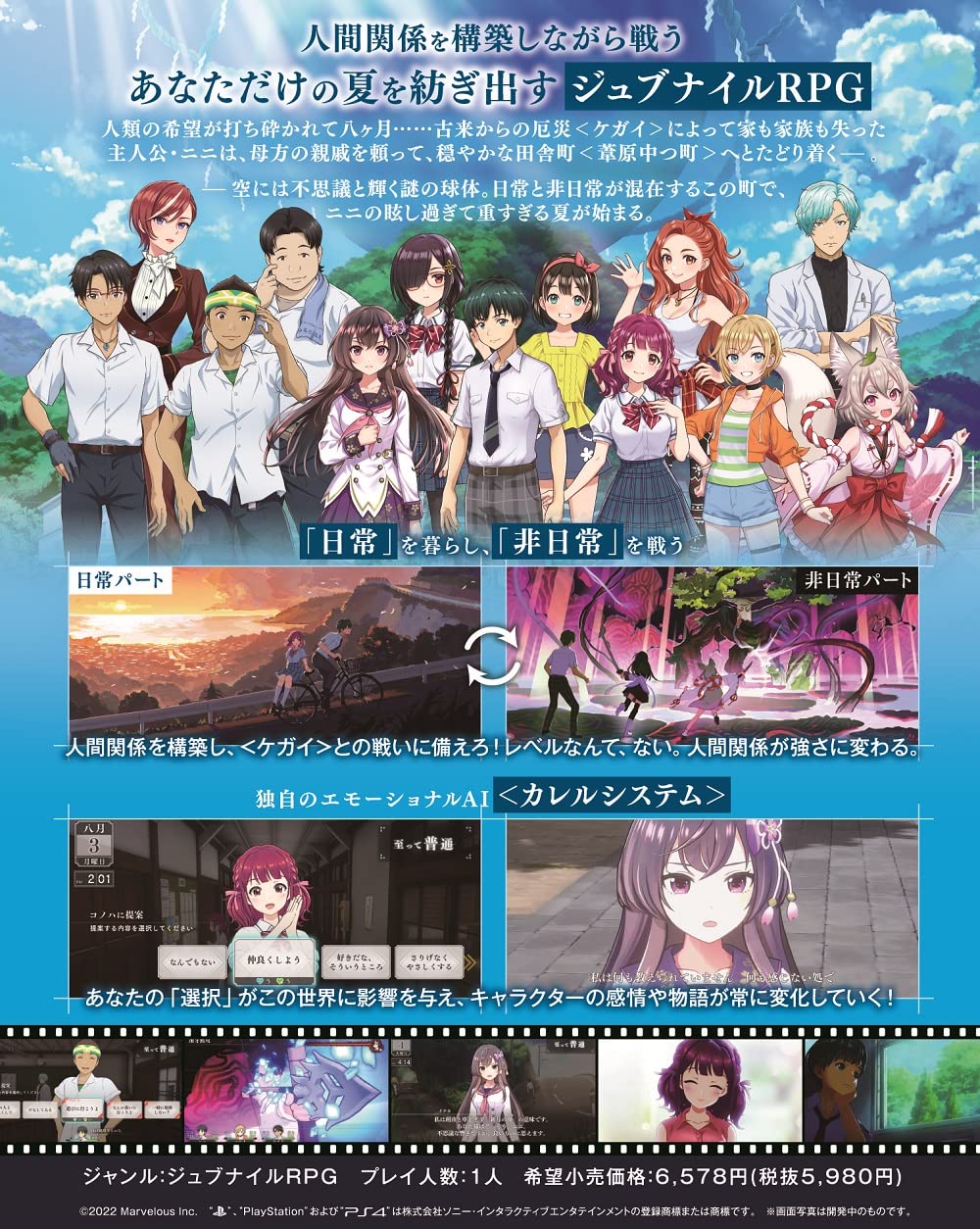 「日常」を暮らし、「非日常」を戦うあなたは、主人公・ニニとなり、古き良き田舎町を舞台に仲間たちと1983年8月の1か月間を過ごします。また、物語は町や学校での生活を楽しむ「日常パート」と、敵と対決する「非日常パート」をくり返すことで進行します。