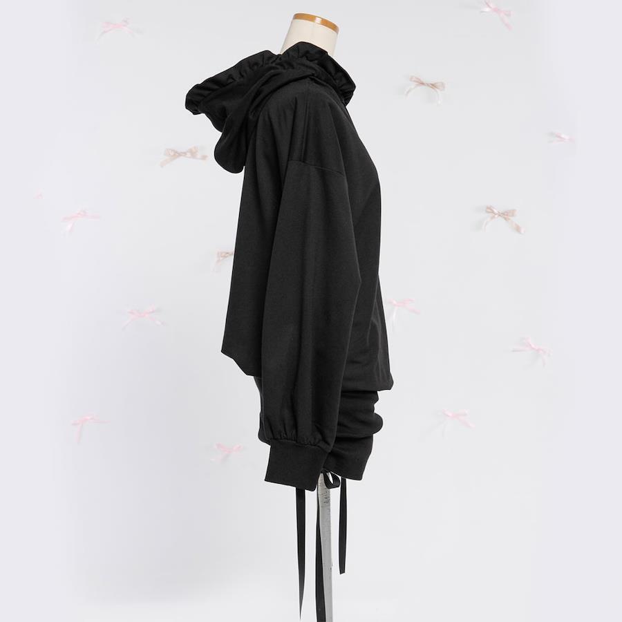 襟が選べる♪トレンドライクなスウェットミニワンピースのご紹介。【デザイン】ゆる×ピタな絶妙あざとシルエットがトレンド感抜群なスウェットワンピースです。フード襟かセーラー襟の2種類からお好みの襟タイプを選べます♪ボリューミーなお袖やゆるっと脱力感のある上半身と、ピタッと引き締めてくれるミニ丈シルエットがメリハリをつけてくれてスタイルUP効果も抜群◎スウェット生地でラフな印象なのに、可愛いらしさ+女っぽく着れちゃいます♪パーカーのリボン先にはパールチャームがついているので、コーデのワンポイントに◎伸縮性のある生地なので、被りで着用いただける仕様です。スカートのサイドドロスト部分はお好みでクシュっと感を調整して頂けます。