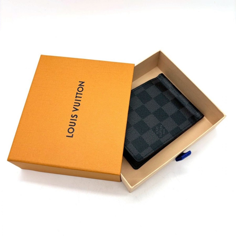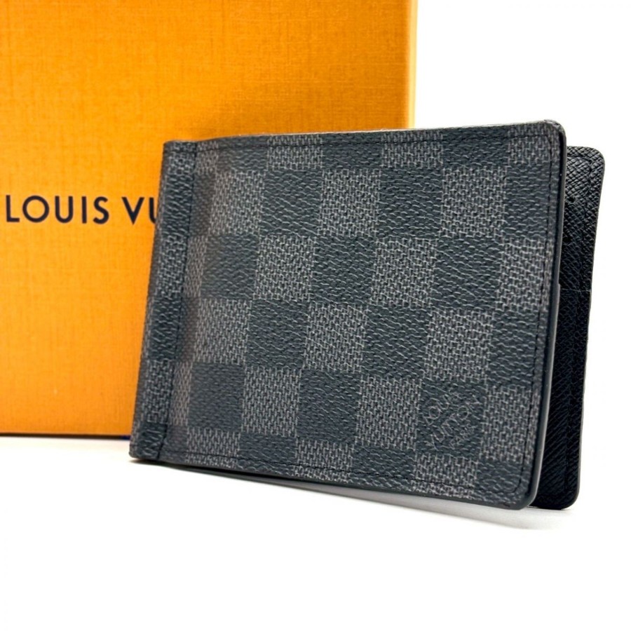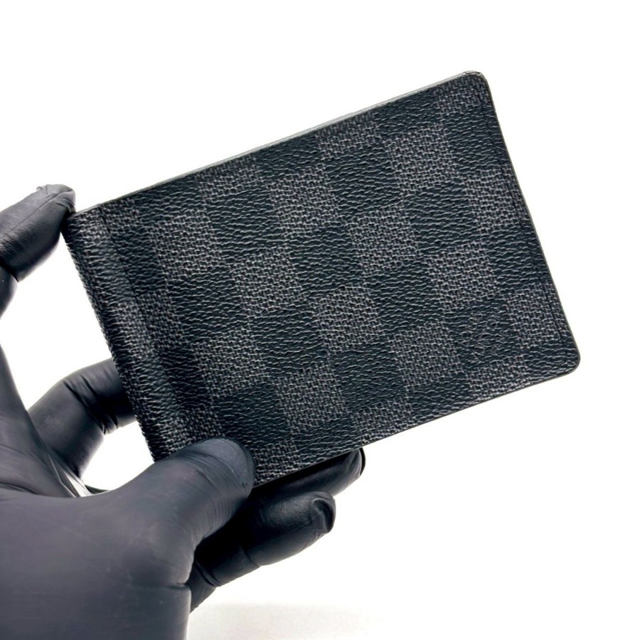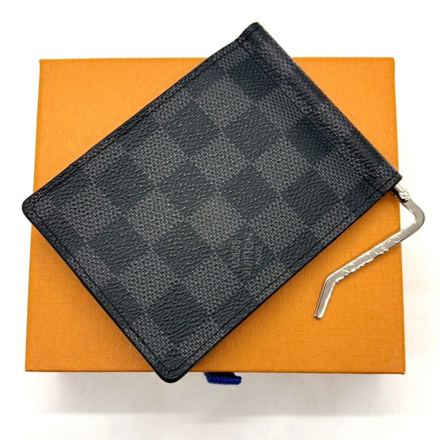 【商品説明】・スーツの内ポケットにもすっきり収まる、端正なダミエグラフィットのマネークリップ。キャッシュレス志向の今に馴染む薄さとカード収納で、会計の所作までスマートに整えたい方に。