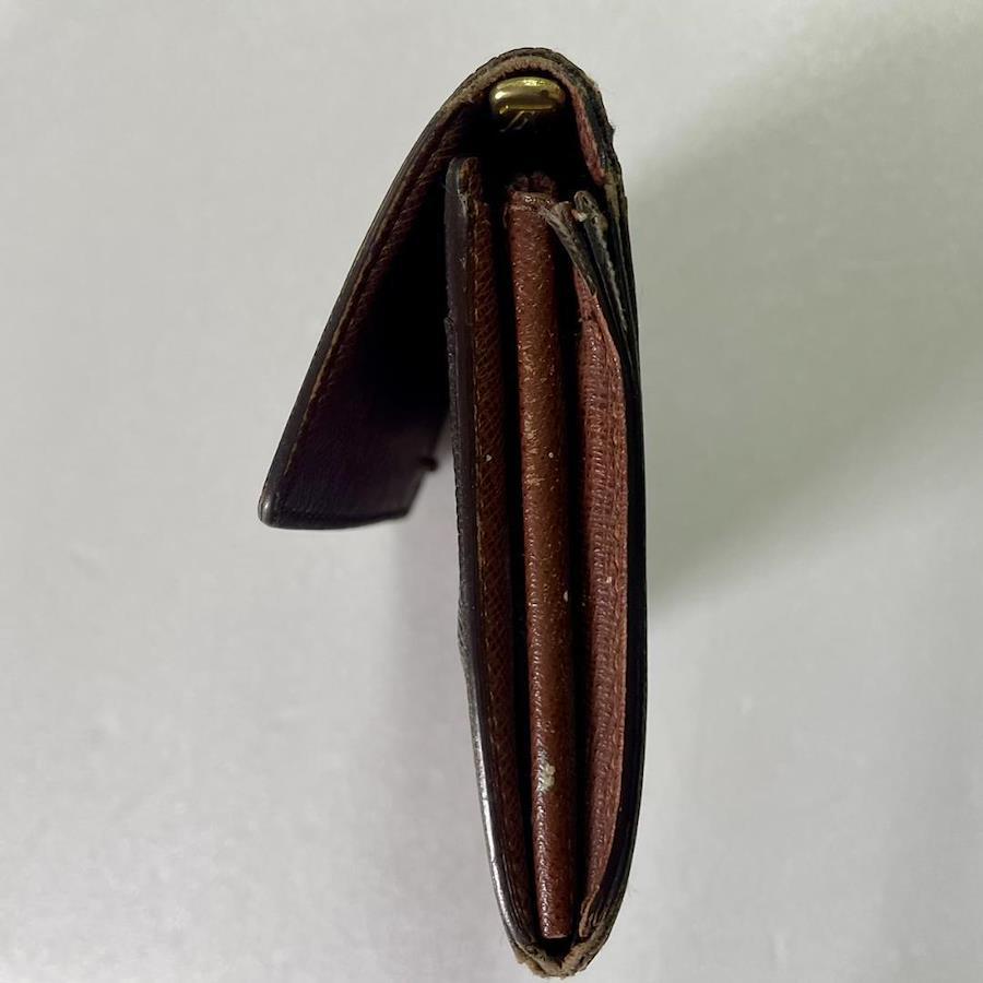 ☆こちらの商品はUSED品ですので新品や未使用品をお求めの方はご遠慮ください。モノグラムパターンのブラウン二つ折り財布、内部にファスナー付きポケットとカードスロットあり。