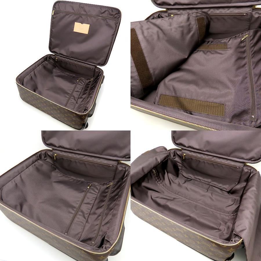 [全体コンディション]全体的に使用感あり [外・表面] スレ / キズ [外・ハンドル] 一部スレ [外・角] キズ / 汚れ / スレ / 毛羽立ち [外・縁] キズ / 汚れ / スレ [外側] 車輪にスレ・キズ・汚れ、ハンドル(ヌメ革)部分メーカーリペア済み。伸縮ハンドルの裏側はヌメヤケ・スレ有。 [ヌメ革] 全体ヤケ [におい] 香水(強) [金具部分] キズ / 剥がれ [内側] スレ / 一部汚れ / 毛羽立ち