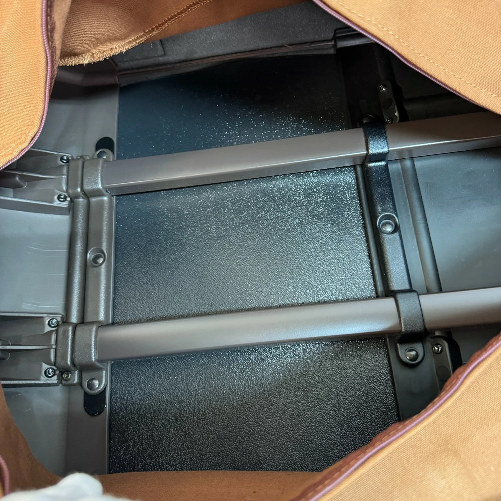 | 状態 | 【外・表面】スレ、キズ、剥がれ、剥げ、破れ、汚れ、黒ずみ、シミ、亀裂 【外・ハンドル-ストラップ】スレ、キズ、汚れ、黒ずみ、シミ 【外・コーナー】スレ、キズ、剥がれ、剥げ、破れ、汚れ、黒ずみ、コバ割れ、コバ剥がれ 【外・形状】少し型崩れ 【内側】小キズ、スレ、ヨレ、汚れ 【ファスナー部分】小キズ、スレ、汚れ、途中までしかファスナー閉まらない。 【におい】?し タイヤ劣化、ゴム底割れ取れ、ファスナーレーン破れ有り。ファスナー閉まらない。ネームタグにシミ、破れ、劣化有り。ベガスストラップにシミ、汚れ、サビ有り。 |