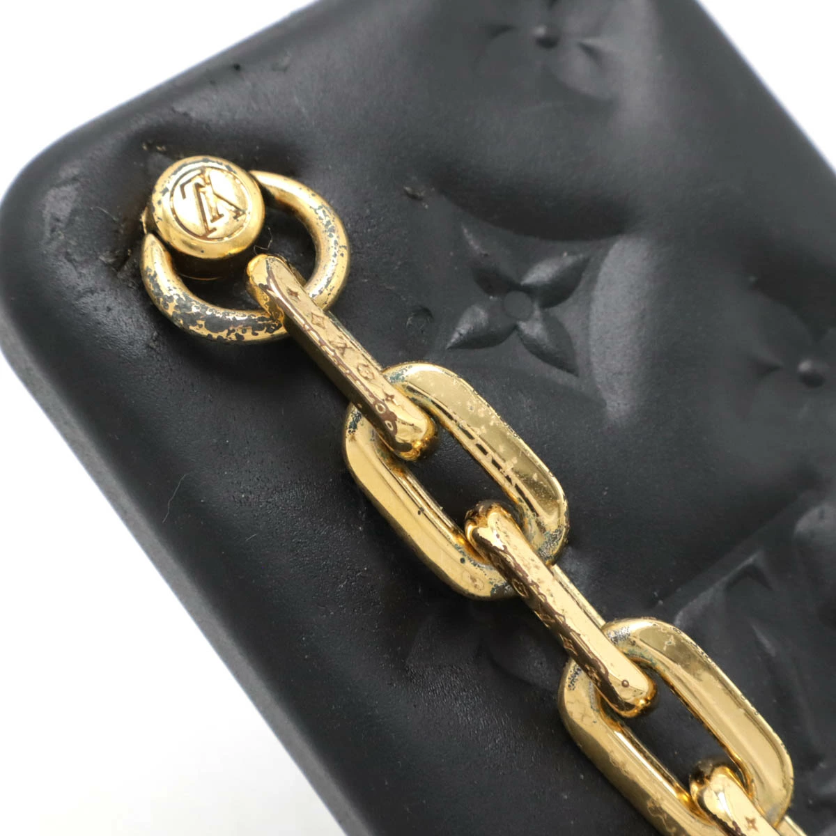 手持ちもできるチャンキーなゴールドカラーのチェーンを備えた、ファッショナブルかつ実用的なアクセサリーです。