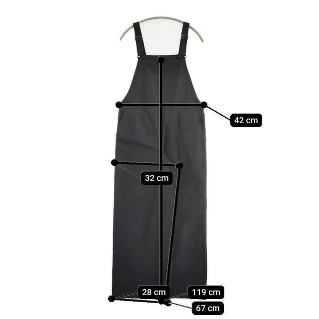 | 実寸サイズ | 着丈:約119cm 身幅:約42cm 股下:約67cm ワタリ幅:約32cm 裾幅:約28cm 備考 肩紐は調節可能 ※採寸画像がある商品はハンガーに吊るした状態での計測のため、平置きでの採寸とは差が生じる場合がございます。平置きでの実寸サイズをご希望の場合は、ご購入前に必ずご質問ください。 ※記載以外のサイズが合わないことを理由とした返品はできませんので、 記載部分以外で実寸サイズの気になる箇所があれば必ず購入前にご質問ください。 |