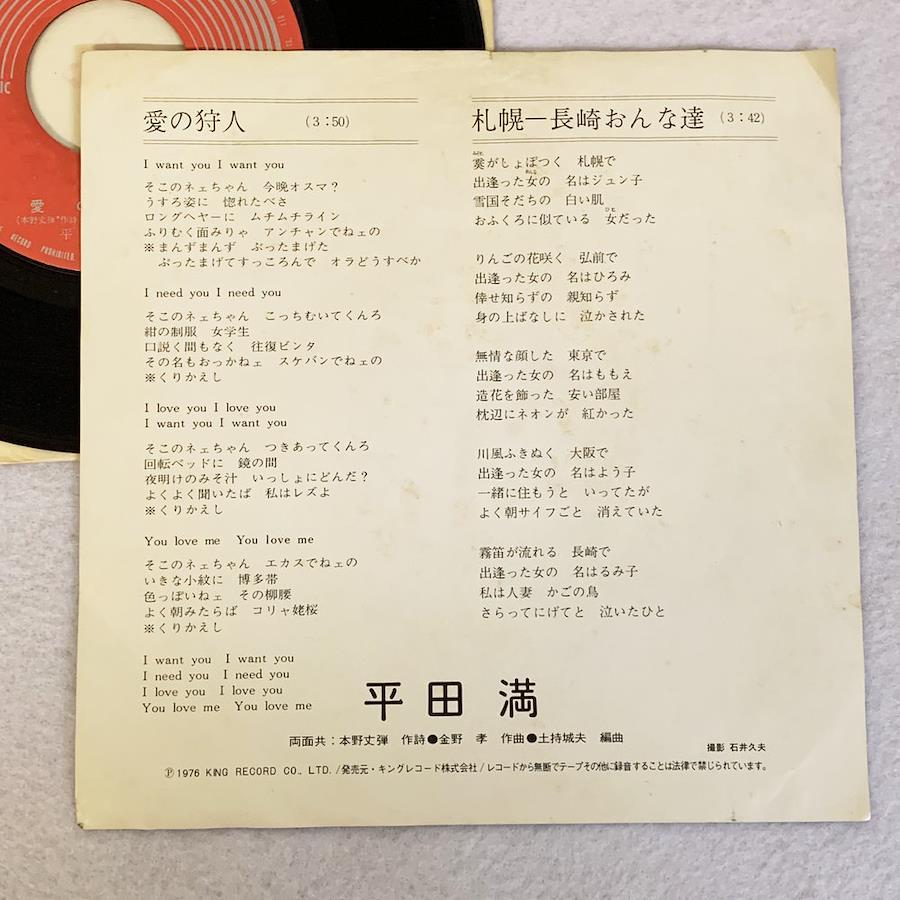 Love Hunter Sapporo-Nagasaki Women 1976 Hirata Mitsuru EP Record 7-inch Single Extended Play