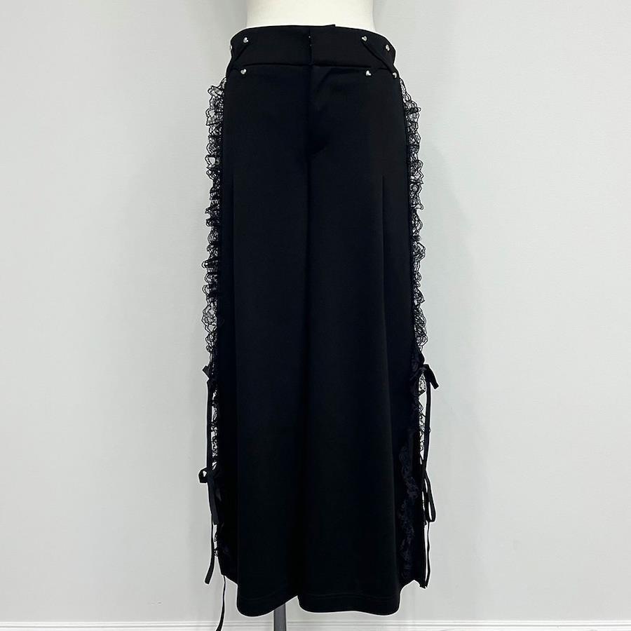 今季押さえておきたい旬顔ロングパンツ【デザイン】ローウエストでウエストまわりをすっきりさせたこちらのアイテムは、サイドスリットで美脚効果抜群。スタッズやファスナー引き手など、ところどころにハートをあしらいワンポイントに。配色のレースとルーズなシルエットが一気にこなれた印象へと導いてくれるアイテムです。履き心地がとにかく楽ちんなので、一着持っておけば大活躍間違いなしのおすすめボトムです!【素材】レーヨン混で柔らかく、なめらかな素材です。《透け感》カラーによってあり 《生地の厚さ》普通 《裏地》なし 《伸縮性》あり《生産国》中国