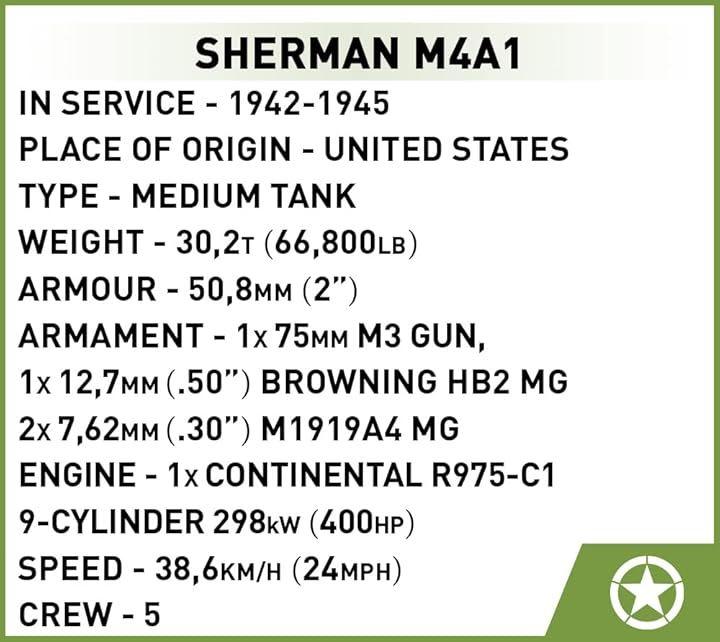 COBI ブロック アメリカ軍 戦車 シャーマン M4A1 SHERMAN 1/48スケール 312ピース レゴに互換あり 「MADE IN EU」2715