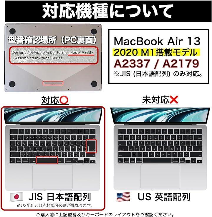 「M1チップモデル対応」2020年モデルのMacbook Air 13インチのJIS配列仕様にフィットする専用キーボードカバー。