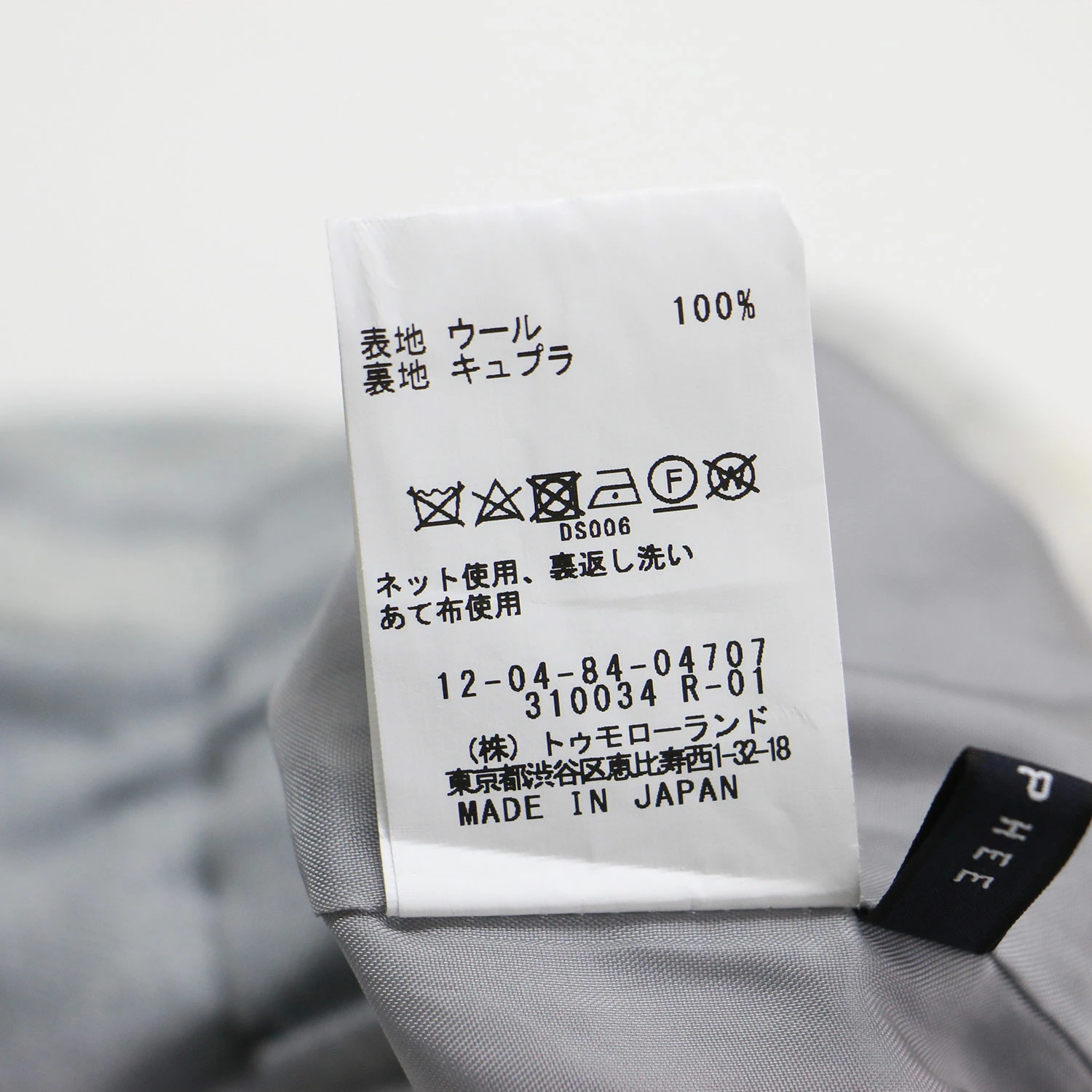| 素材 | 表地 ウール 100% 裏地 キュプラ 100% |