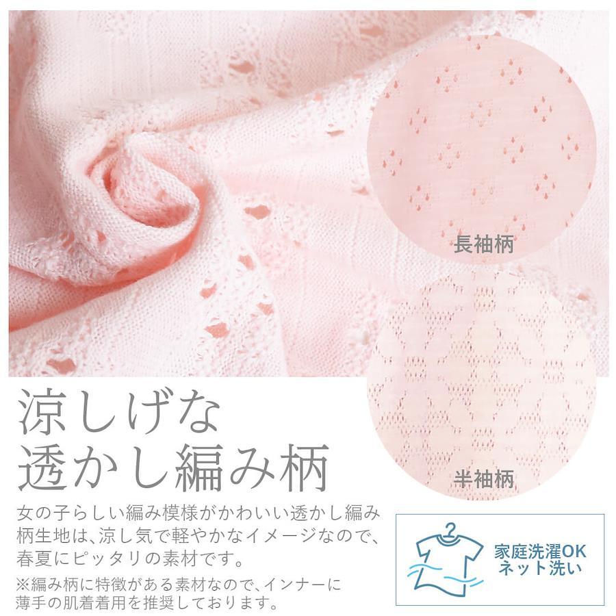 女の子らしい涼しげな編み柄が可愛く、春夏におすすめの一枚です。
