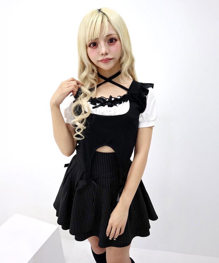 ◇POINT◇甘さとちょいセクシーが絶妙バランスのメイドテイストを取り入れたガーリーカットソーで、カジュアルにもガチ盛れコーデにもイケる万能アイテム。胸元にはフリルやリボンがアクセントになった、ガーリー&メイド感たっぷりのデザイン。襟元はスクエアネックでデコルテがキレイに見えて、上品さ&色気が同時に叶う。袖はふんわり感がしっかり出るから、二の腕カバー&華奢見せ効果もバツグン。クロップド丈でハイウエストボトムとの相性抜群です。