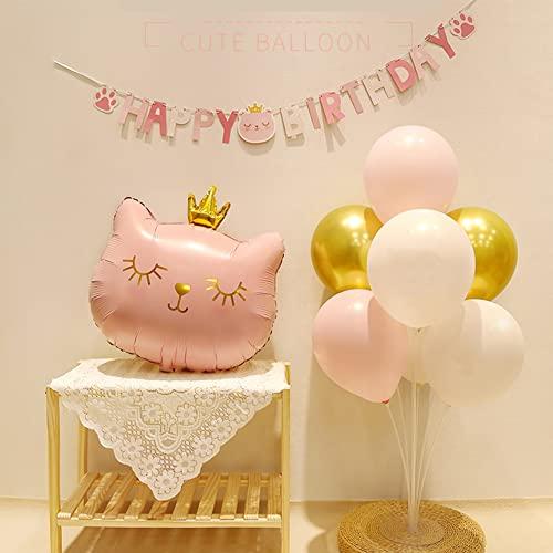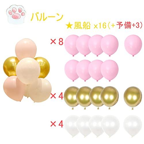 【誕生日 飾り付け セット内容】HAPPY BIRTHDAY ガーランド×1、10インチ四角星バルーン×2、21インチ猫バルーン×1個、28インチ猫バルーン×1個、風船×16個(+予備用3個)、フラワークリップ×2個、リボン×1(10M)、両面テープ×20点