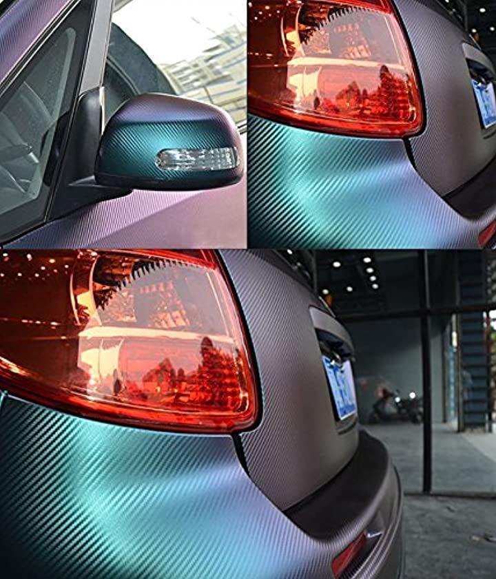 光があたると色が変化するマジョーラタイプの3Dカーボンシートになります。