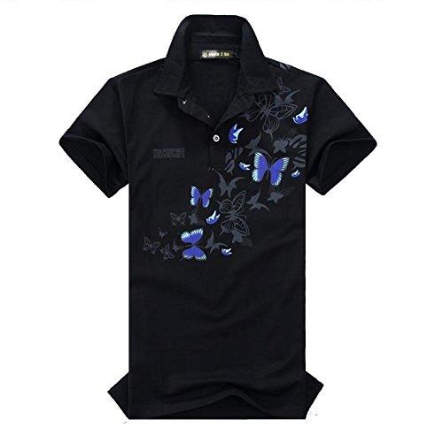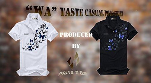 Size -> XLサイズ: 肩幅 46cm 胸囲 105cm 身丈 69cm 【注意】タイトなデザインです。肩幅は日本サイズのL(45cm)とXL(47cm)サイズの中間です。胸囲はMサイズ程度です。胸囲を日本のXL(117cm)サイズと同様にご着用されたい場合は3XL、ゆったりの場合は4XLサイズをお薦め致します。Detail -> さらりと通気性の良い白い生地に和を彩る華麗な蝶の乱舞を見事にプリントしたポロシャツです。夏のコーデはアイテム勝負! このワンランク上のスタイリッシュな大人デザインのポロシャツで十分勝負できます!クール素材のかっこいいポロ シャツ は夏場のアツい季節でもさらさら涼やか軽快。 テニス、ランニング、ジョキング、サッカー、フットサルにも吸汗と速乾に優れているので、重宝します。バックプリント オラオラ系 お兄さん系 ビックサイズ b系
