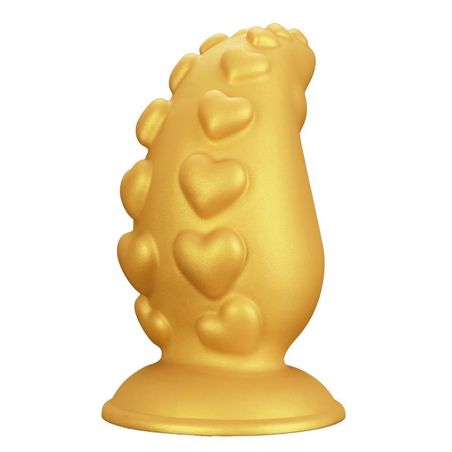MAPARON アナルプラグ 凹凸あり 液体シリコン 吸盤付き ゴールド色 M:8.2x17.5cm