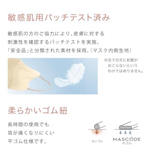 MASCODE(マスコード)は「ファッション性」と「機能性」を兼ね備え、より快適で毎日使いたくなるマスクを提案します。 豊富なカラー展開と1人1人の顔にフィットし正面・横顔ともに美しく見える独自の立体形状を採用しスタイリッシュかつ個性を引き出す「ファッション性」を実現。 花粉や黄砂、ウイルス飛まつを徹底ブロック+息がしやすい独自の立体構造+長時間の使用でも耳が痛くなりにくい平ゴムを採用し毎日使いたくなる「機能性」を実現しました。MASCODE(マスコード)は「ファッション性」と「機能性」を兼ね備え、より快適で毎日使いたくなるマスクを提案します。 豊富なカラー展開と1人1人の顔にフィットし正面・横顔ともに美しく見える独自の立体形状を採用しスタイリッシュかつ個性を引き出す「ファッション性」を実現。 花粉や黄砂、ウイルス飛まつを徹底ブロック+息がしやすい独自の立体構造+長時間の使用でも耳が痛くなりにくい平ゴムを採用し毎日使いたくなる「機能性」を実現しました。【独自の立体構造】 正面・横顔ともに美しく見える+ムレにくく、唇が内側につきにくい独自の立体構造を採用し、 形状・素材・仕様すべてにこだわりました。【内側カラー不織布採用】 大多数のマスクユーザーの悩みである「マスク内側の汚れ」。 マスク内側をカラー不織布にすることで メイクや皮脂による汚れが目立たなくなり、 外出先でマスクを外す際にも気になりません。【柔らかいゴム紐】 長時間の使用でも耳が痛くなりにくい平ゴム仕様です。【安心の3層構造】 花粉や黄砂、PM2.5などはもちろん、粒子が細かいウイルス飛沫もしっかりブロック。 JIS適合審査済み。原産国 中国(#lf)(#lf)(#lf)商品購入前に、ストア紹介ページをご確認ください。