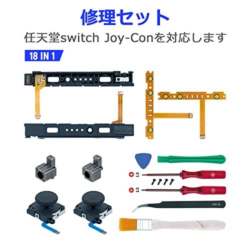 Apply to NS Switch Joy-con: High quality replacement repair parts for Joy-Con controllers. Includes 2 analog sticks, L/R charging port slider set, L/R slicker buckle lock set, SR/SL sync button flex cable and screws. Perfect for replacing damaged or worn parts STRONG AND DURABLE MATERIALS: Our slider buckle lock set is made of alloy. Stronger and more durable than the original plastic buckle set. Fix the metal rail to the controller and keep it in place when using the controller EASY REPLACEMENT PART: Come with a precision screwdriver and repair tool kit to disassemble and assemble the game console and controller. (Video guide can scan QR code on the box, or check the video guide on the left) Package Includes: 2 Analog Sticks, L/R Charging Port Slider Set, L/R Slicker Buckle Lockset, SR/SL Sync Button Flex Cable, Lock Parts and Repair Tool Note: This product is not an official product. When you disassemble the Joy-con, there is a risk that the official thing will be disabled. Check out the product video for a video guide for repair. Professional installation skills required. We recommend that you check tutorial videos on YouTube or the like. If you watch a video after purchase, you don't know how to fix the repair, please leave it to a professional repairer. We are not responsible for any damage to Joy-Con during installation. If you can check your order from order number, we will support you. If you have any questions about the product, please contact our store. (Account Service), (Order History), (Seller), (Ask Questions), and (We ask Answer). We will promptly support your connection