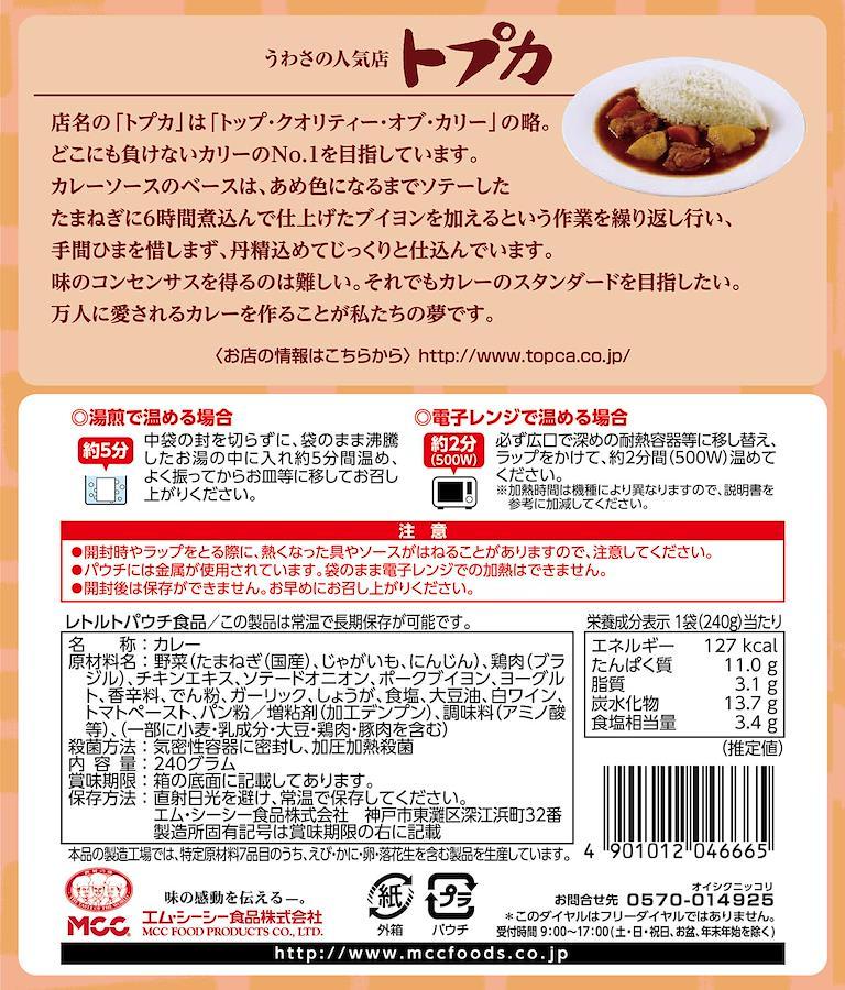 内容量:240g×5個カロリー:(1袋(240g)当たり)エネルギー・・・127kcaL原材料:野菜(たまねぎ、じゃがいも、にんじん)、鶏肉、チキンエキス、ブイヨン(豚骨、豚肉)、ヨーグルト、香辛料、でん粉、ガーリック、しょうが、食塩、大豆油、白ワイン、トマトペースト、パン粉、増粘剤(加工デンプン)、調味料(アミノ酸等)商品サイズ(高さx奥行x幅):165mm×120mm×140mm【重要】メーカーによる商品リニューアルに伴いパッケージ(内容量も含む)変更が行われた場合、新パッケージでお届け致します事ご了承願います。