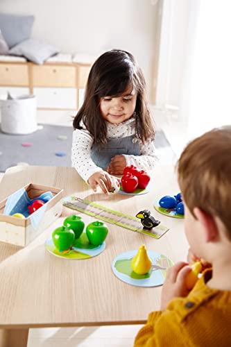 プレイ人数:1-4人 プレイ時間:10分 対象年齢:2歳以上 ドイツ・ハバ社の定番幼児ゲーム「果樹園ゲーム」の低年齢版。 ボリュームのある木製の果実は手にした時のうれしさがアップ。 全員で摘み取らねばならない果実の総数も、カラスが果樹園まで到達するマス目の数も減り、年齢の低いお子さんの集中力の持続時間に合わせて短時間で終わるように配慮されているのがわかります。 果樹園ゲームの「カラス対人間」のドキドキ感はかわりません!