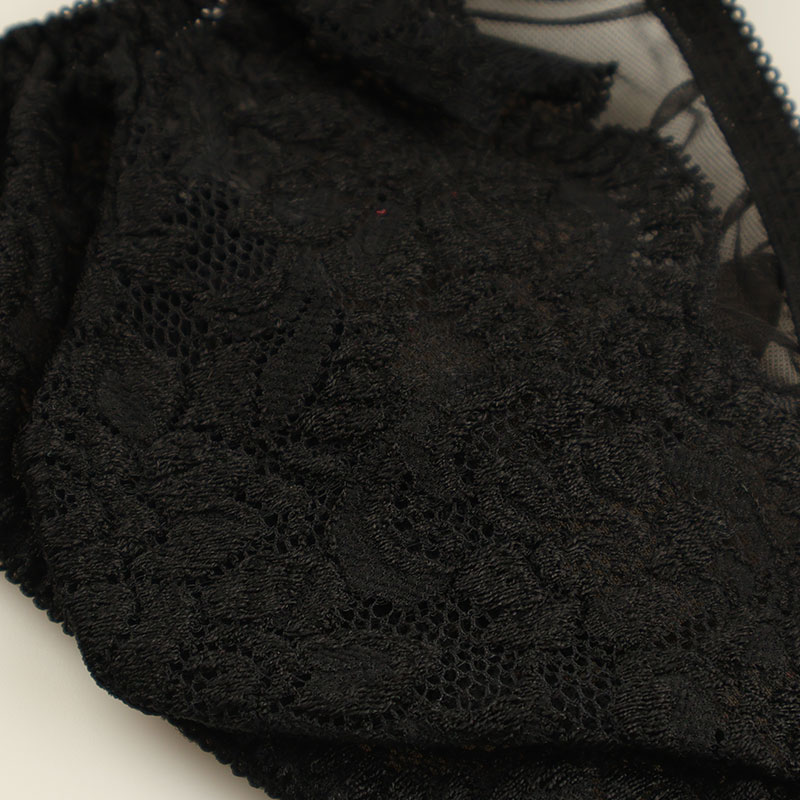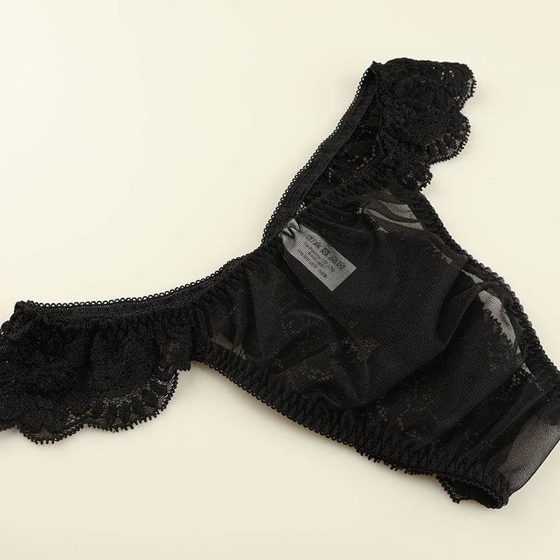 華やかで軽やかな質感を持ち、柔らかな触り心地と優美な透け感が魅力的なセクシーなシースルー素材の20ハーフ生地を使用したハーフバックビキニになります。伸縮性があり美しく綺麗なレースデザインで女性用下着の様なエレガントでフェティッシュな下着になります。
