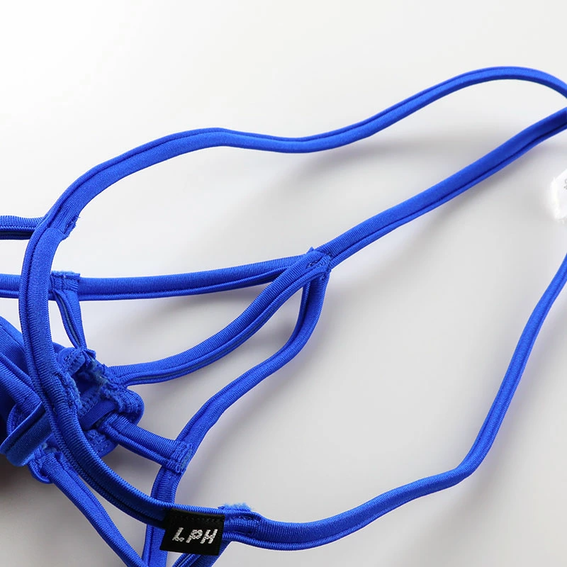 発色が良く光沢感がありハリのあるしっかりとした伸縮性があるのが特徴のライクラ生地を使ったGストリングビキニになります。サイドギャザーが入った貫通型のゾウさんになりストラッピーなスパイダーメンズ下着になります。