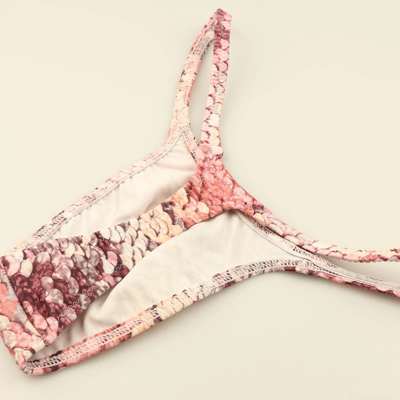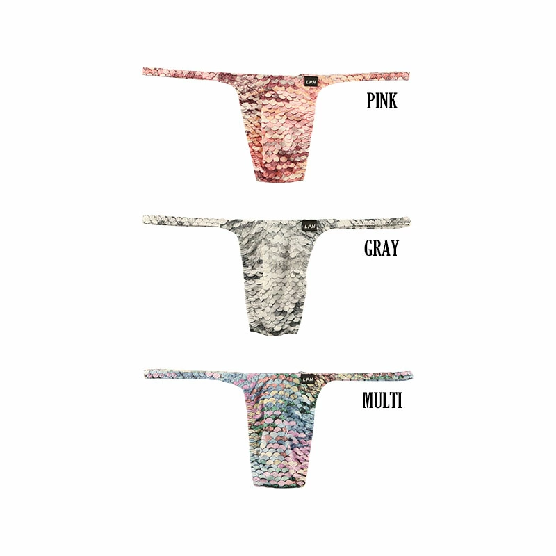 Men's T-back bikini, sequin print, stretch fabric, slim side design, 723047, pink, size L