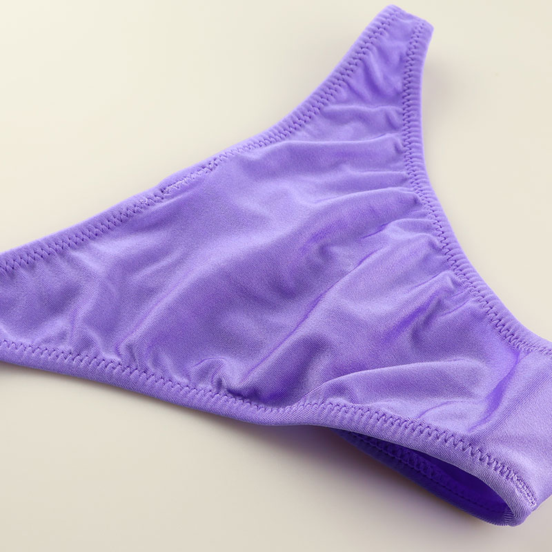 微かなキラキラとした光沢が煌めく中、心地よいサラサラ感が広がり、柔らかな肌触りとストレッチ性を兼ね備えたTSK生地を使用したハーフバックビキニになります。伸縮性にも優れているストレッチ生地になりますので、ノーシームでも男性自身が収まりやすくなったメンズ下着になります。
