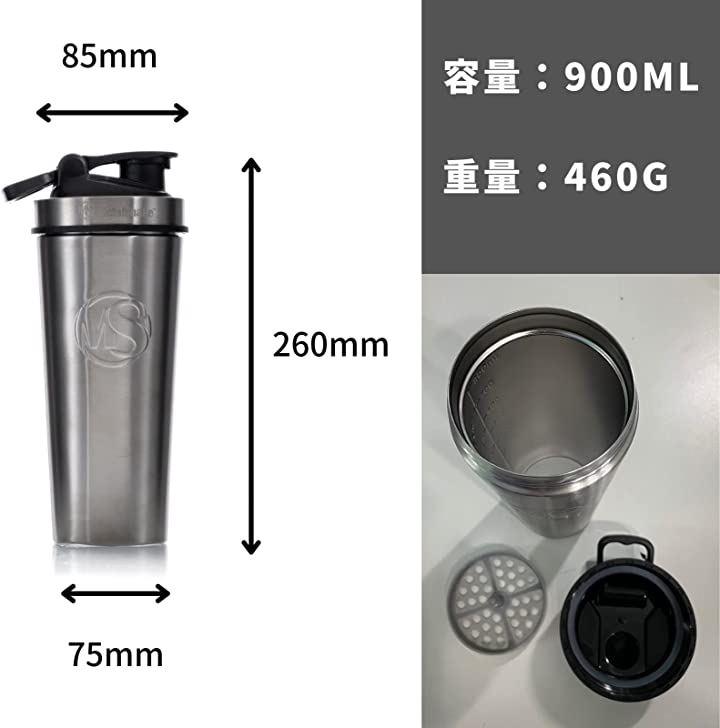 Metal Shake 900ml Metal Shake Water Bottle Protein Shaker Tumbler 24 Hours Cold Retention 6 Hours Retention Double Lock