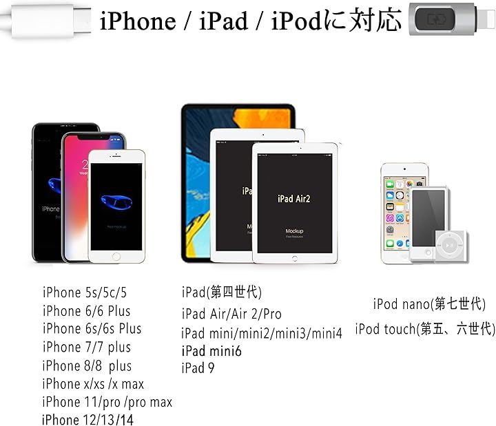 「幅広い対応」usb c 変換アダプタ lightningにより、iPhone14/13/1312/11/x/xs8/7/6/6s/6s Plus/5/5c/5s/4(pro/promax/plus/mini), iPod Nano 7, iPod Touch 5, iPad 4/5, iPad Air 2, iPad Air, iPad Mini 6/5/4/3/2, iPad Mini Retina,airpodsなどのLightning 端子のデバイスを対応できます。
