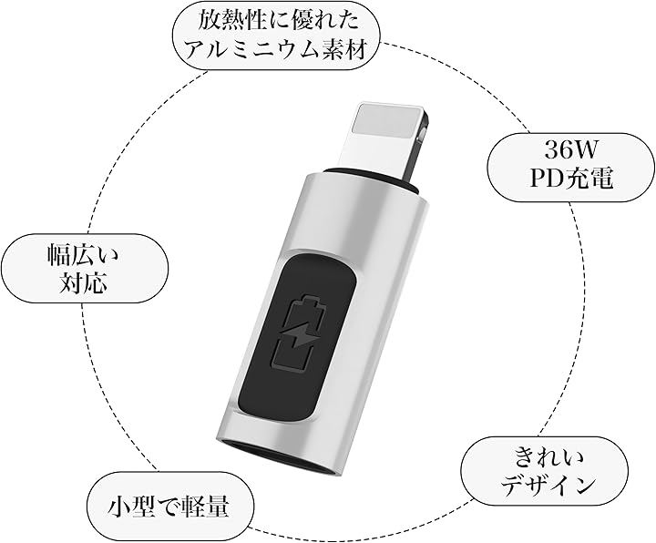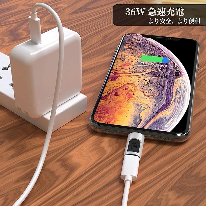 「36W PD急速充電」typec lightning 変換アダプタは、PDチップを内蔵し、最大36Wの急速充電を対応できます。
