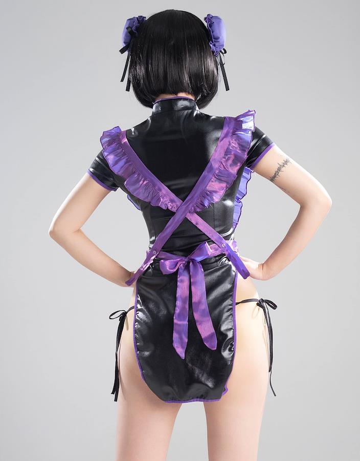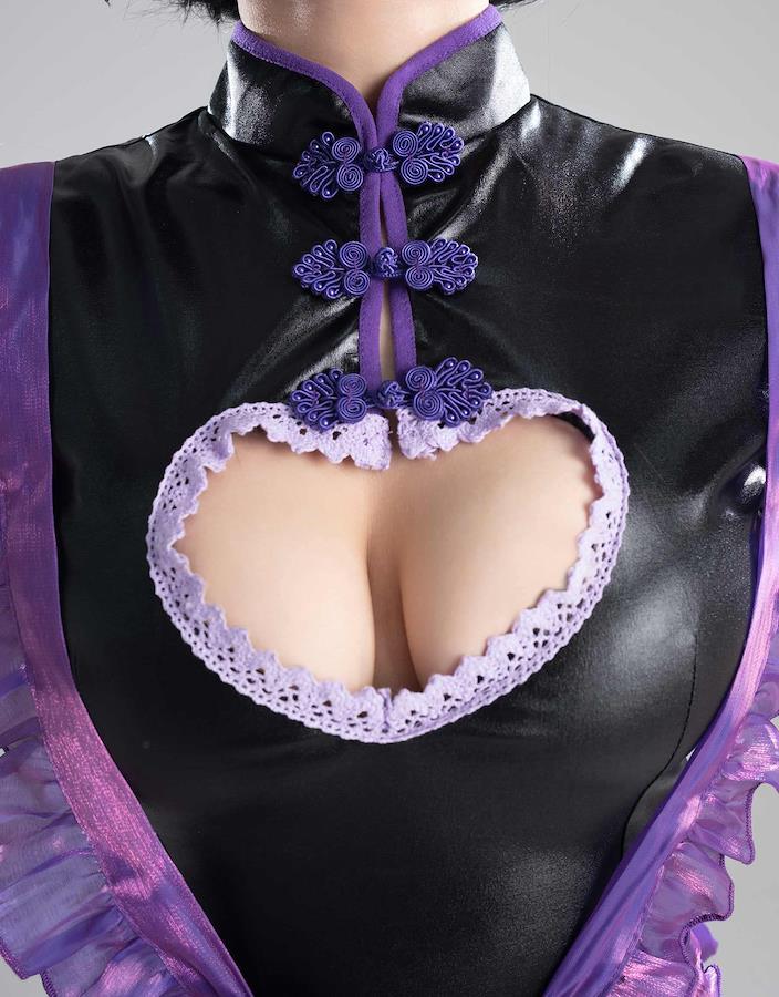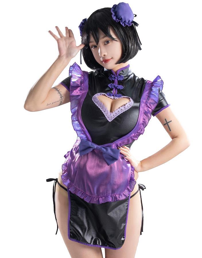 Miccostumes Adult Women's Maid Cosplay Costume, Sexy Open-Chest Heart Cheongsam and Lingerie Set (X)