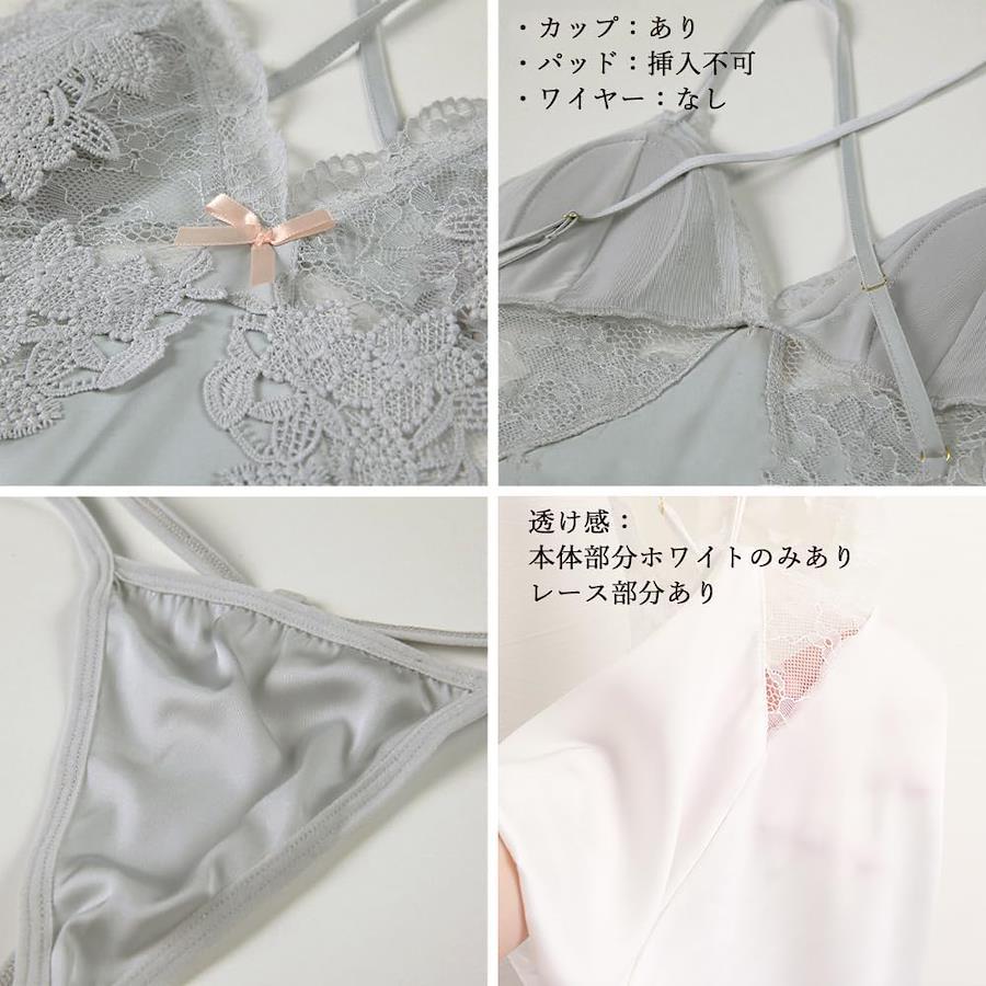 原産国 中国胸元レースと大胆なバックスタイルがセクシーなベビードールセット 情熱的なカラーがより一層、妖艶な女性を演出してくれる 普段のナイトウェアとしてはもちろん、お友達へのプレゼントとしてもおすすめカラー:ブラック/ホワイト/ブルーグレー/ライトグレー/ワインレッド サイズ:ワンサイズ(L) キャミワンピース: 着丈(アジャスターで調節可能):約70-81cm 身幅:約35cm 胸囲:フリー ウエスト:約76-86cm ヒップ:約100-110cm Tバック: ウエスト(ゴム仕様):約62-92cm 商品詳細: ・カップ:あり(パッド挿入不可) ・ワイヤー:なし 裏地:なし 伸縮性:ややあり 透け感:本体部分ホワイトのみあり/レース部分あり 生産国:中国※すべて平置きサイズです(採寸方法違いより、多少の誤差がございますので、ご了承ください)。 ※海外輸入品のため、商品の細部仕様は多少異なる場合がございます。予めご了承の上、ご注文お願い致します。(#lf)(#lf)(#lf)商品購入前に、ストア紹介ページをご確認ください。