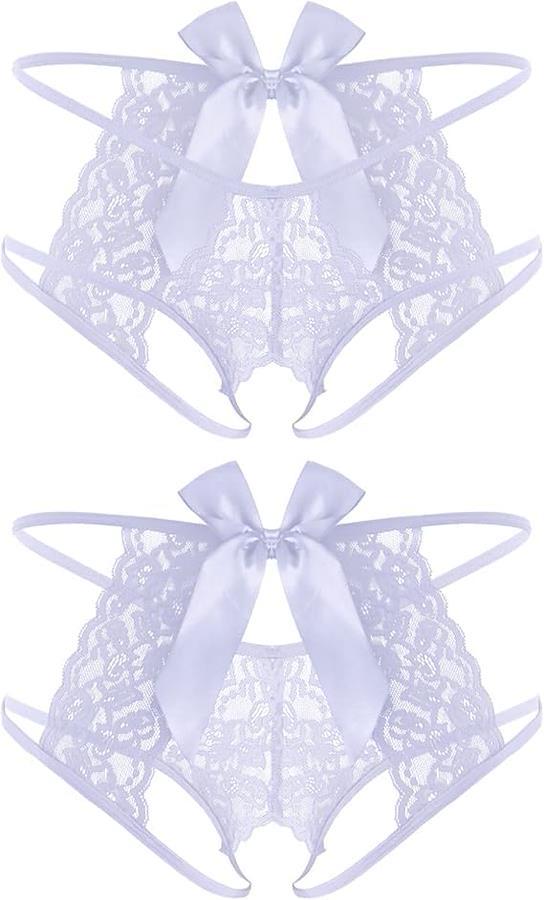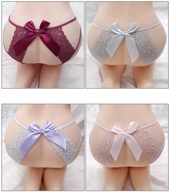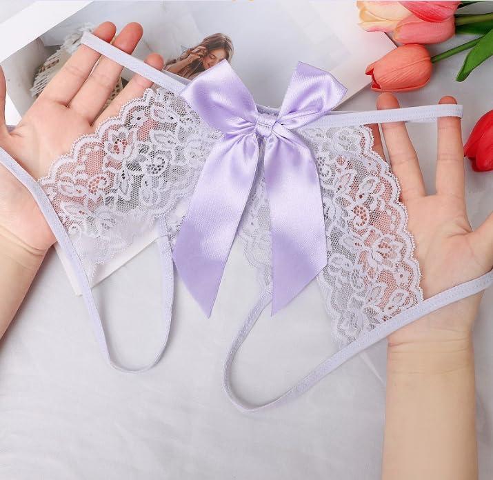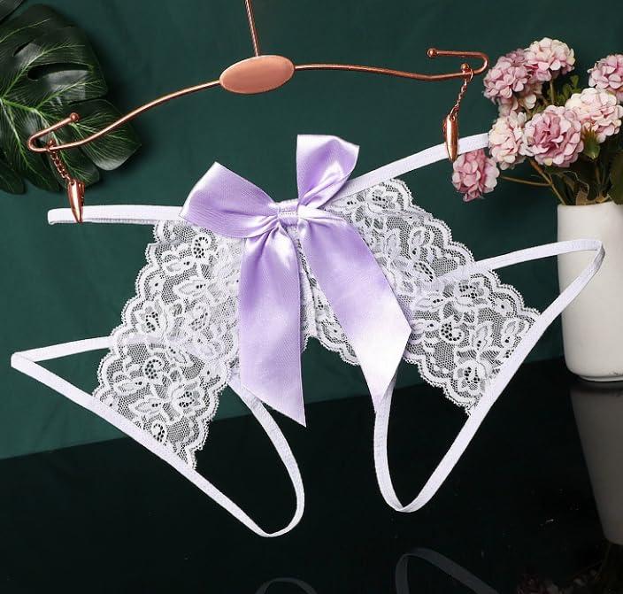 mitetuboueki Sexy Open Crotch Panties, Irregular Hip Ribbon Low-Rise Thong Panties, Lingerie, Open Crotch Panties for Women
