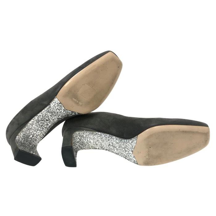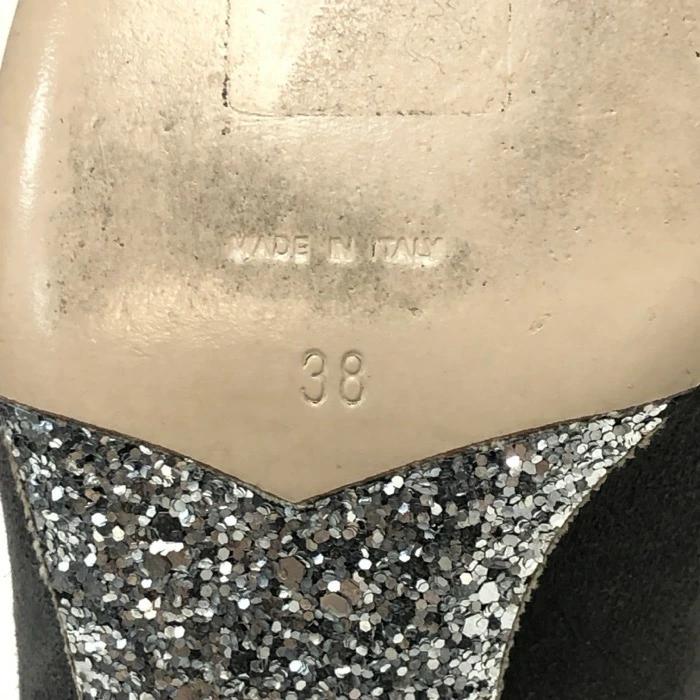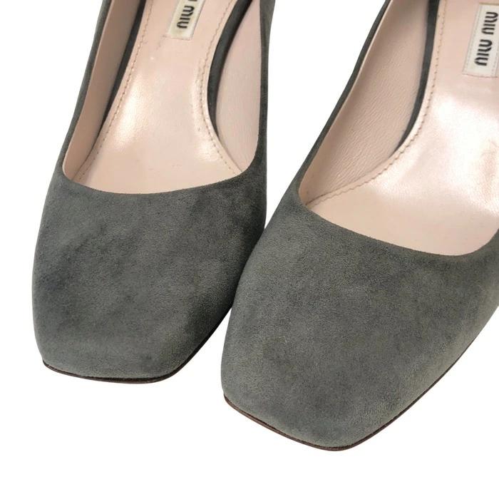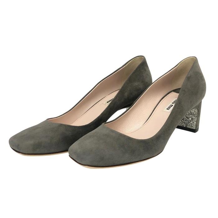 MIUMIU Miu Miu Glitter Square Toe Pumps Suede Dark Gray 25cm equivalent [Used] Women's