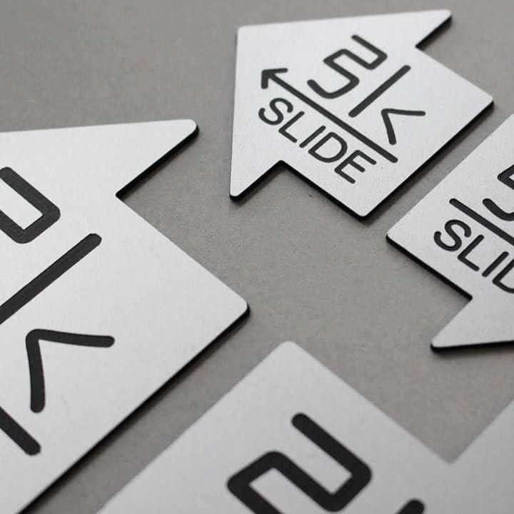 わかりやすい矢印のカタチの引き戸用サインプレートです。